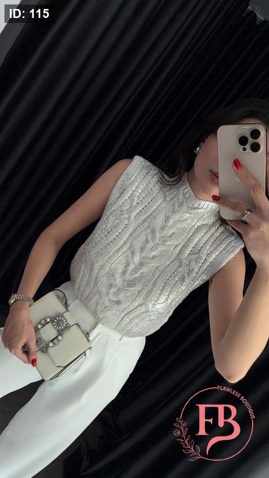 بلوزة باللون الفضي