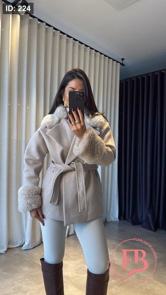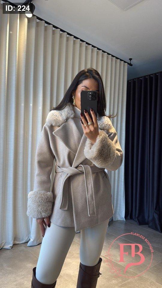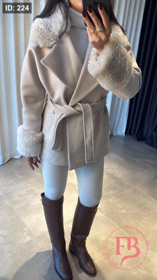 جكيت جوخ مع فرو باللون الاوفوايت