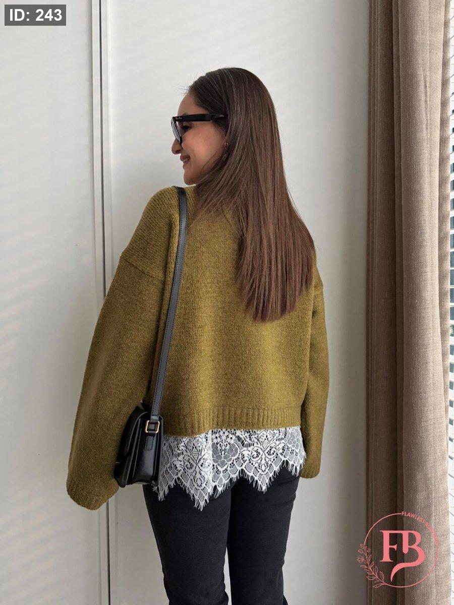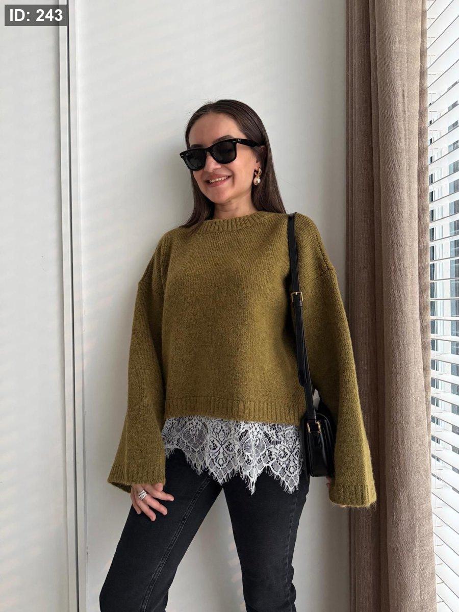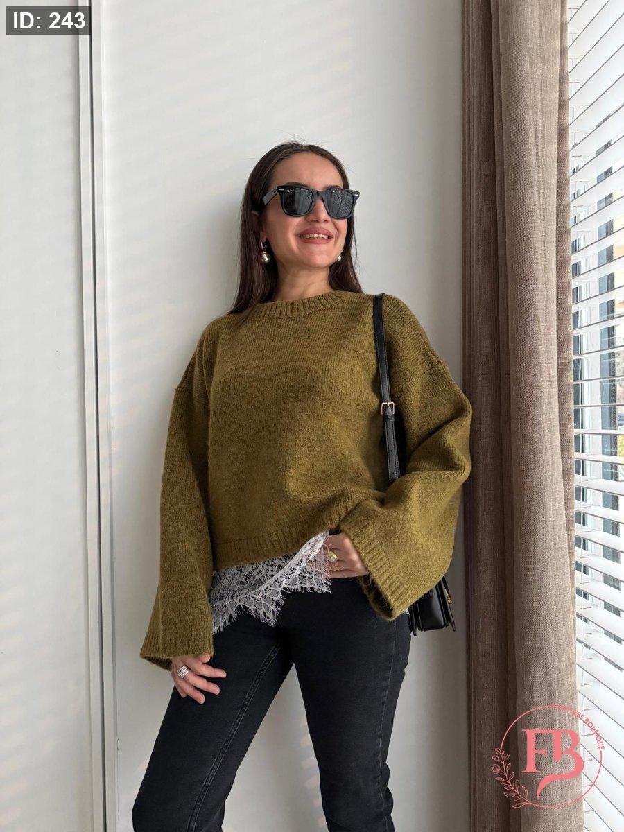 بلوزة دانتيل وظلال باللون الزيتي