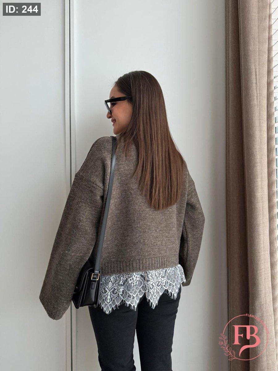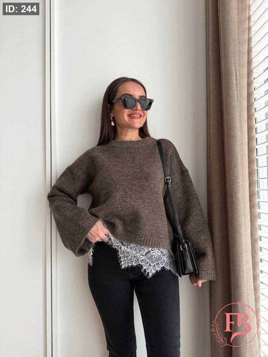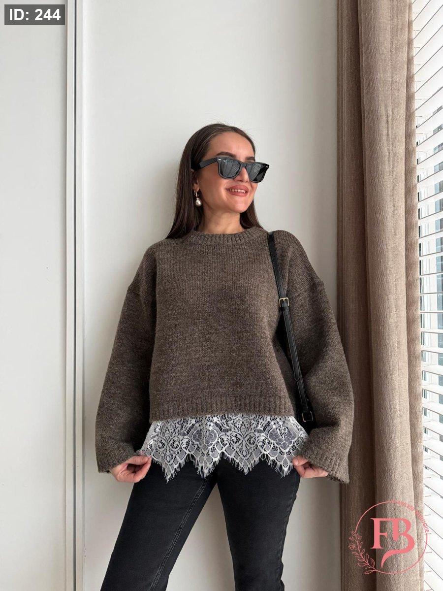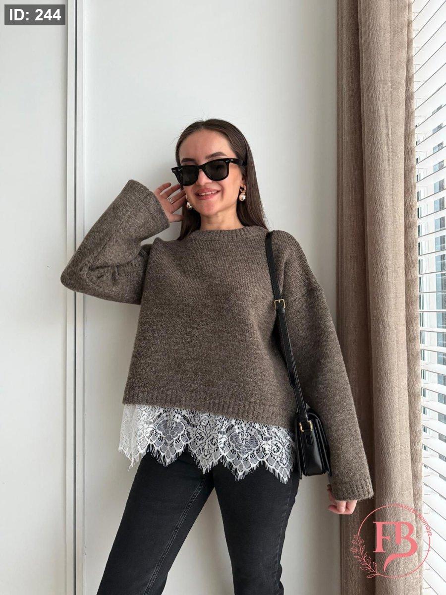 بلوزة دانتيل وظلال باللون البني