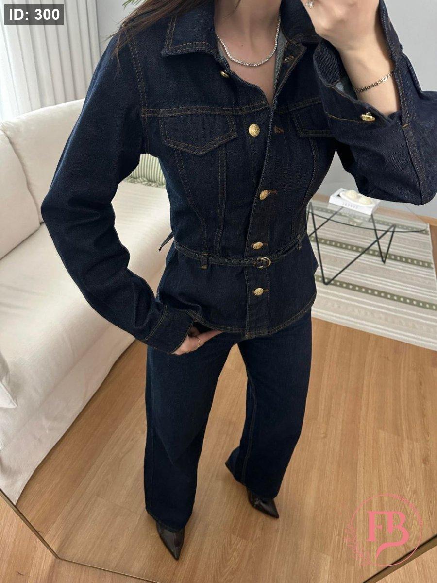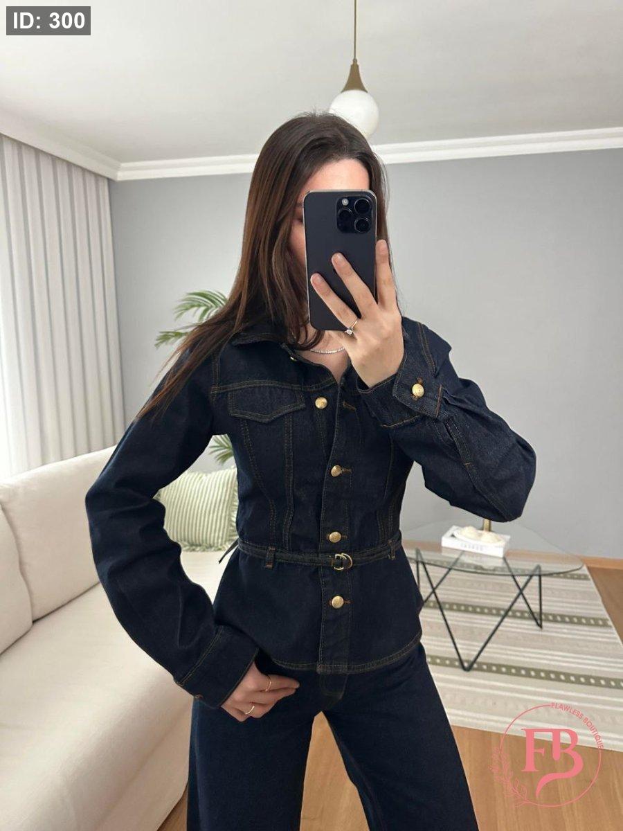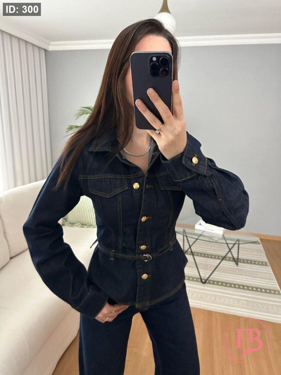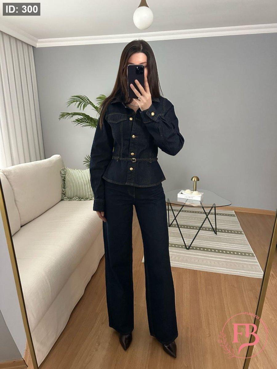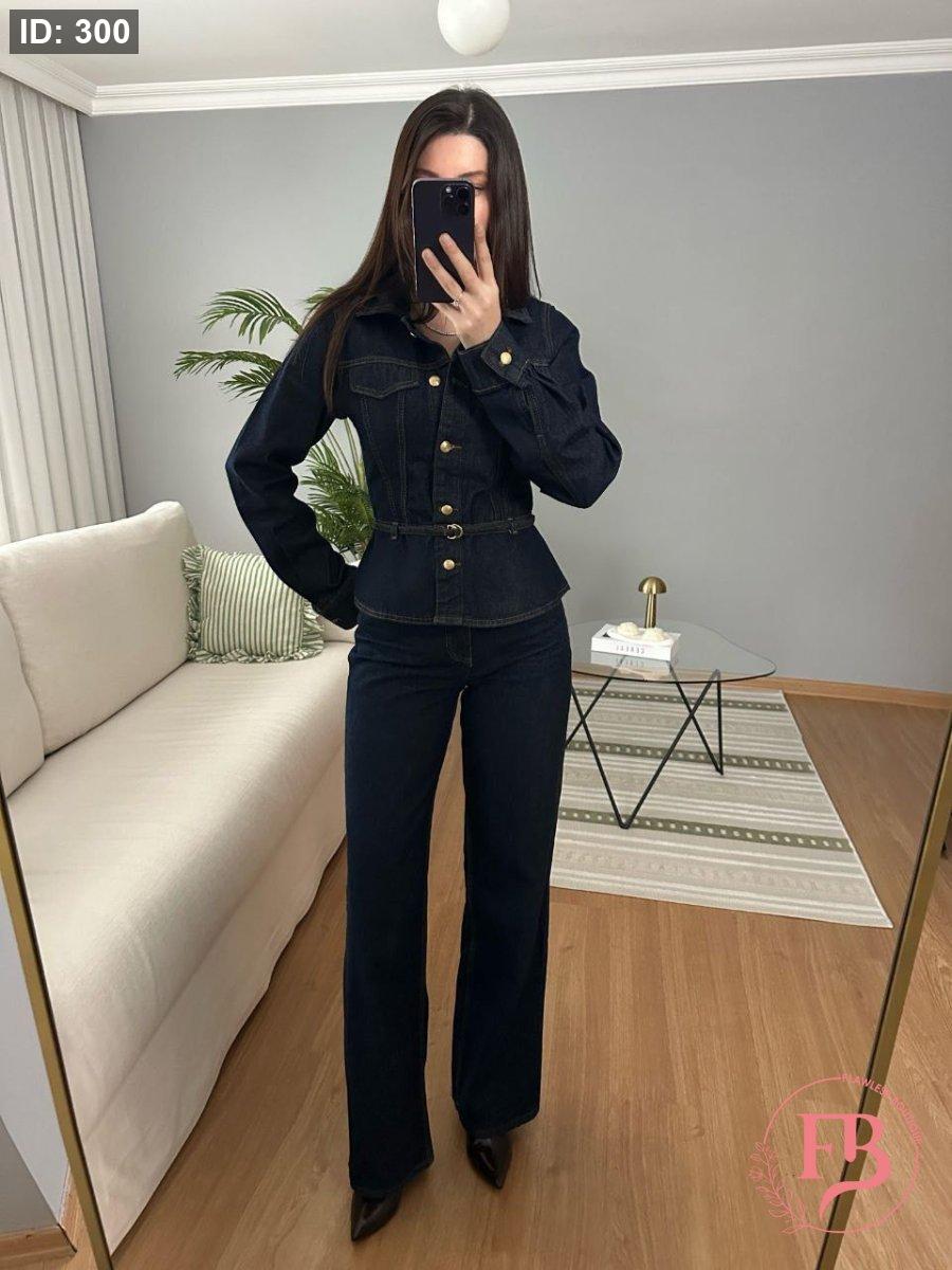 طقم جينز بأزار ذهبية