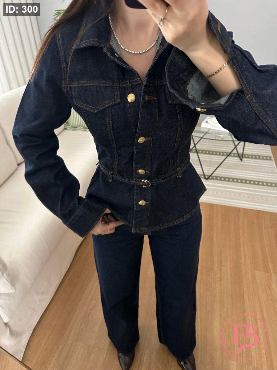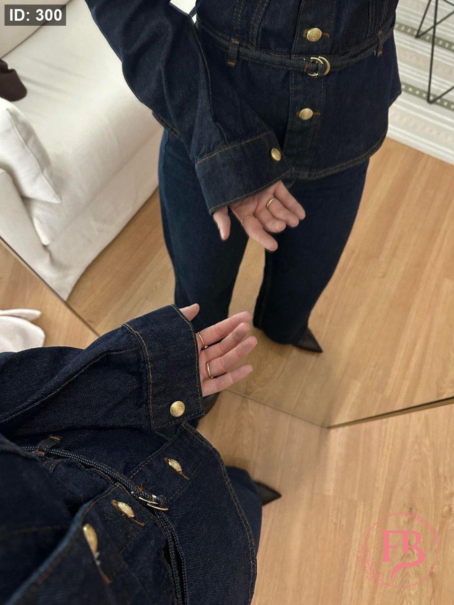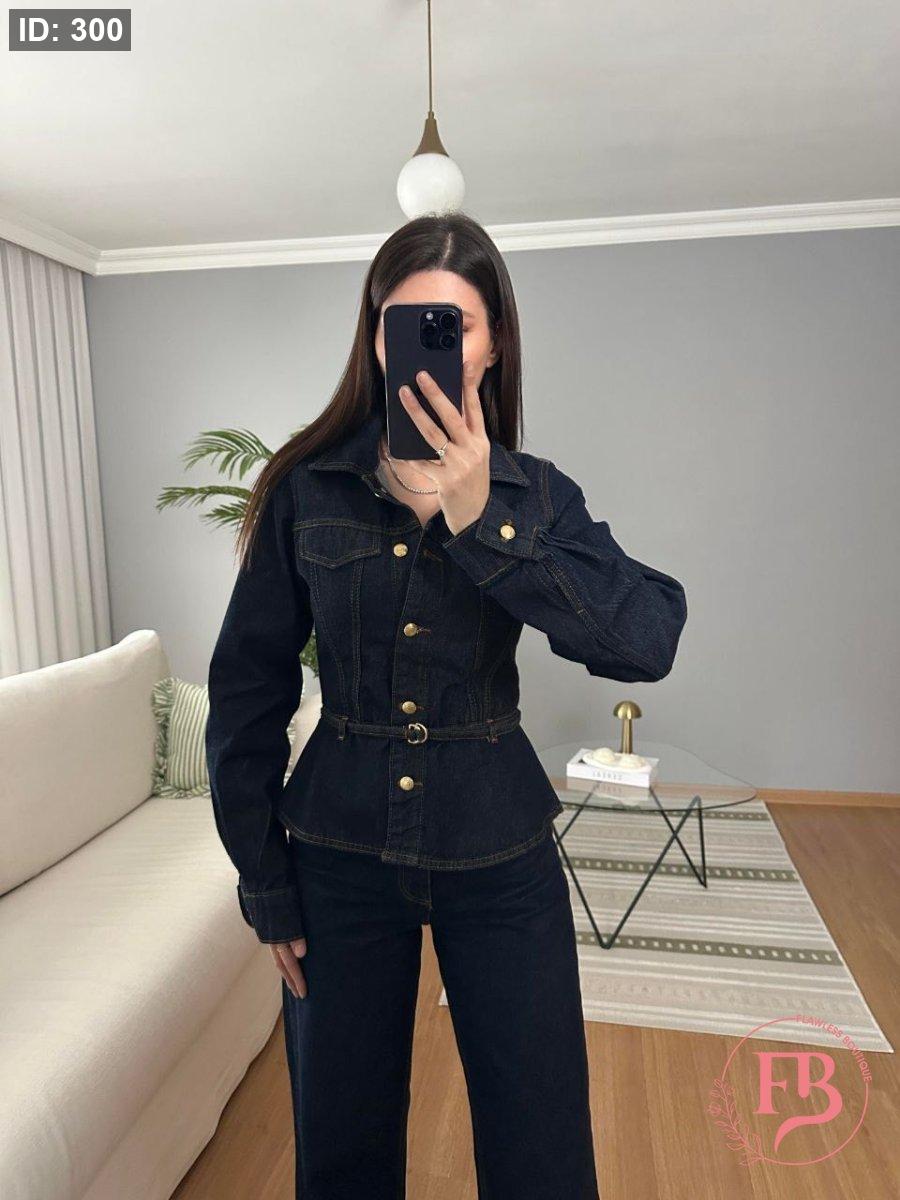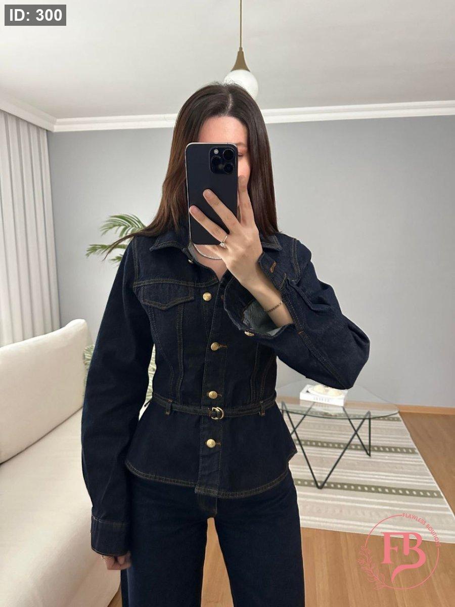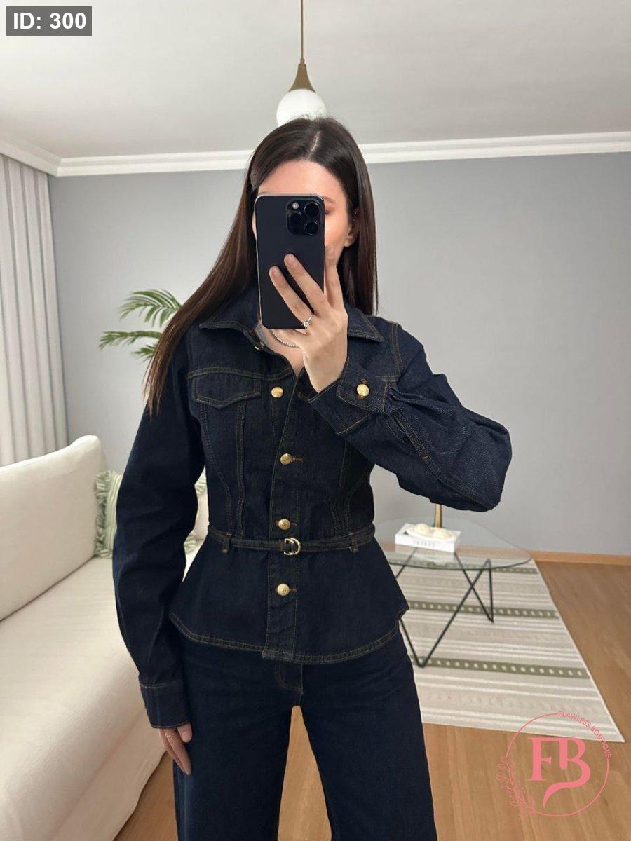 طقم جينز بأزار ذهبية