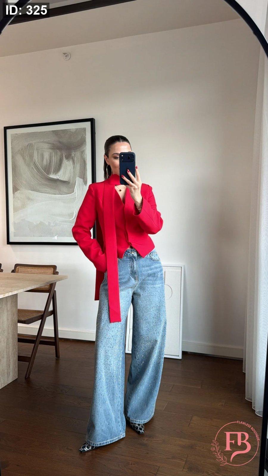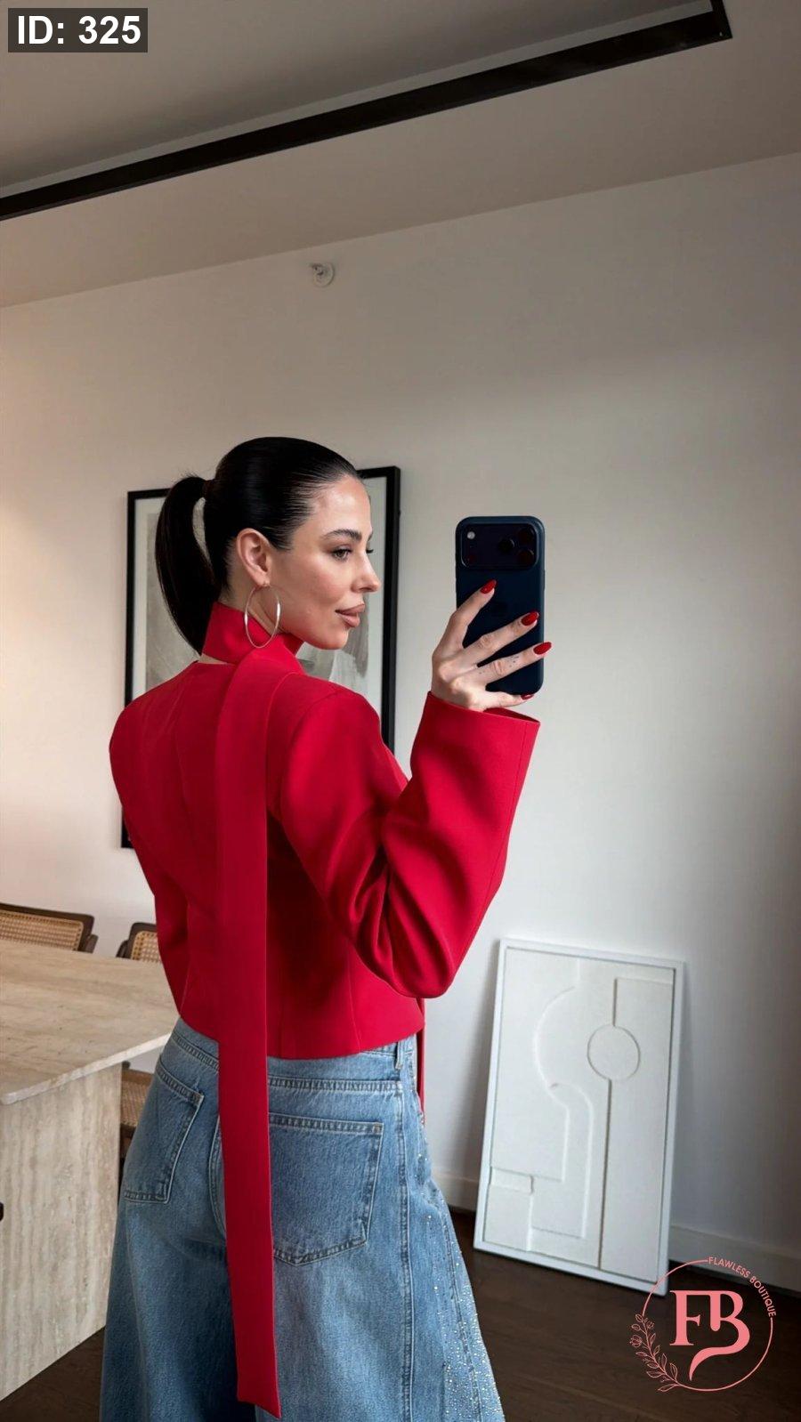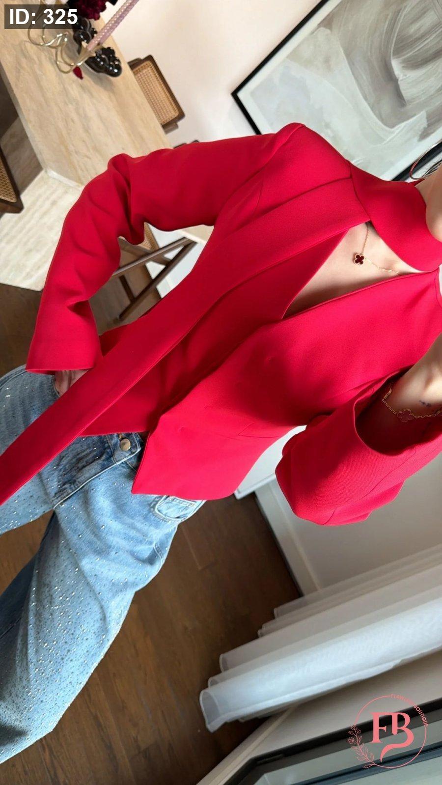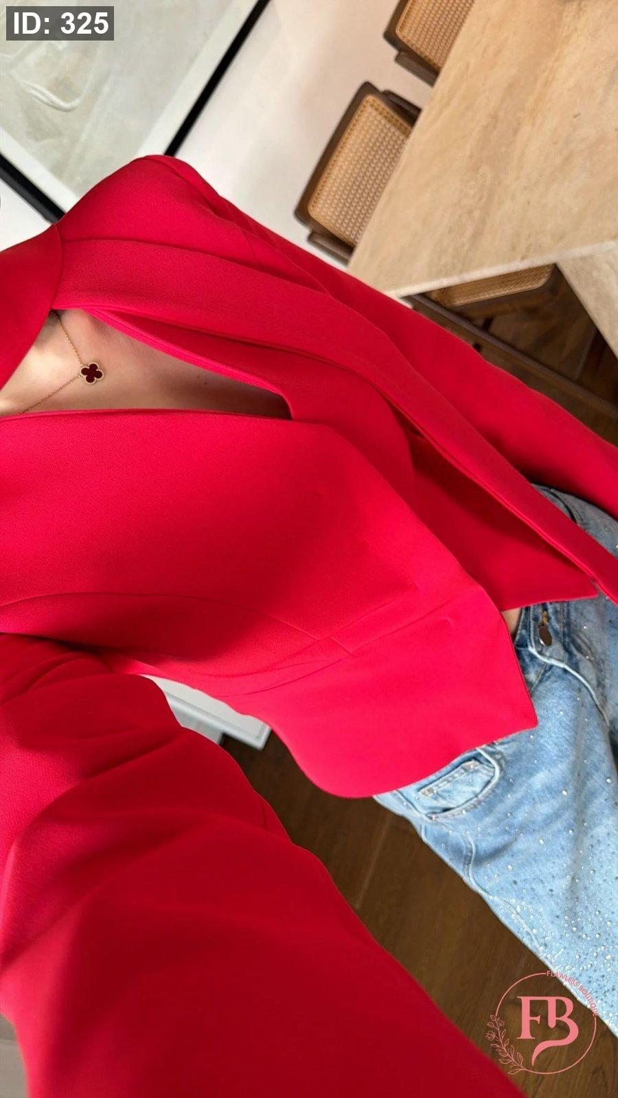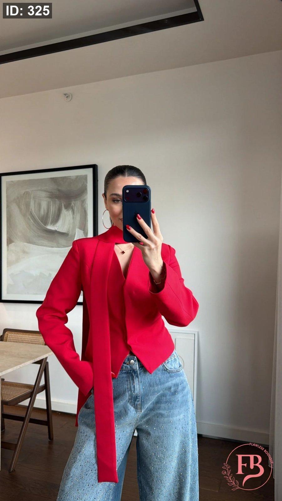 جاكيت مع لفحة باللون الأحمر