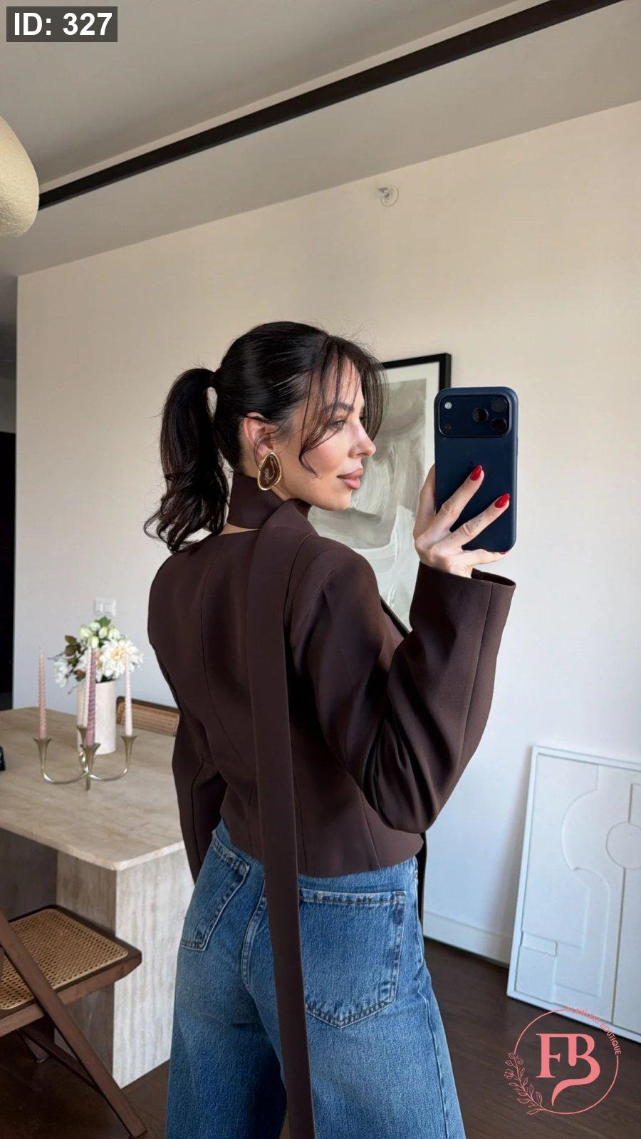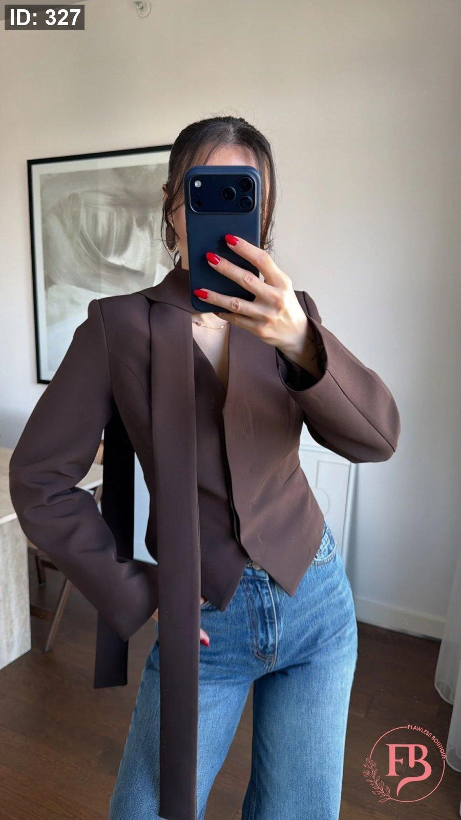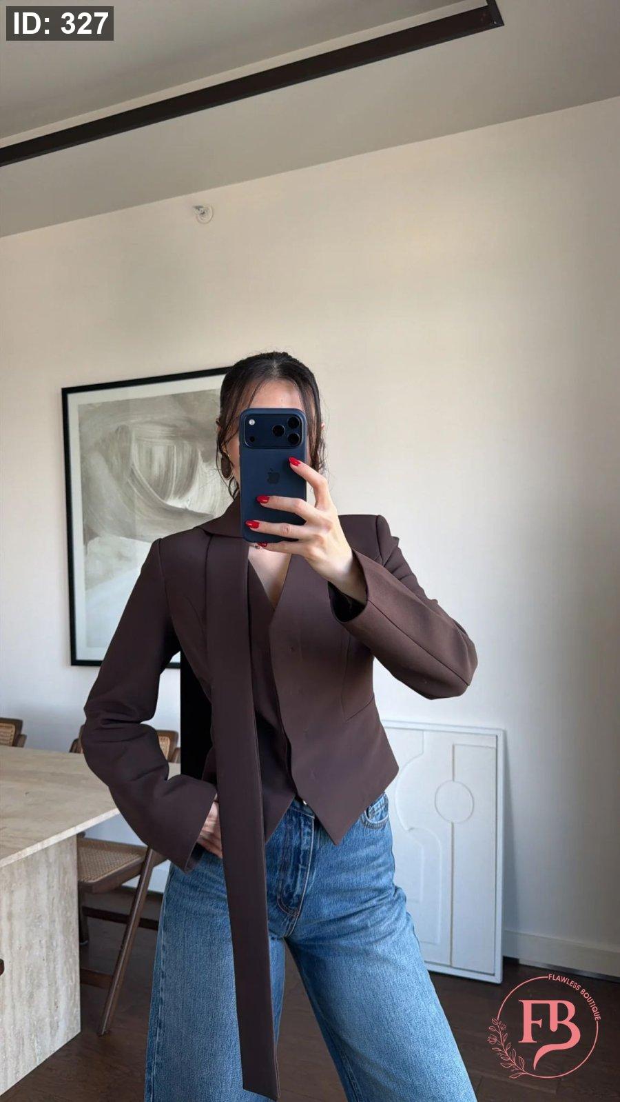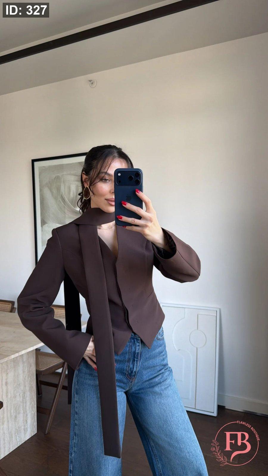 جاكيت مع لفحة باللون البني